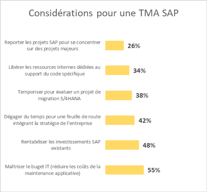 - 85 % utilisent ou envisagent de faire appel à des tiers (TMA) pour optimiser les investissements SAP existants.